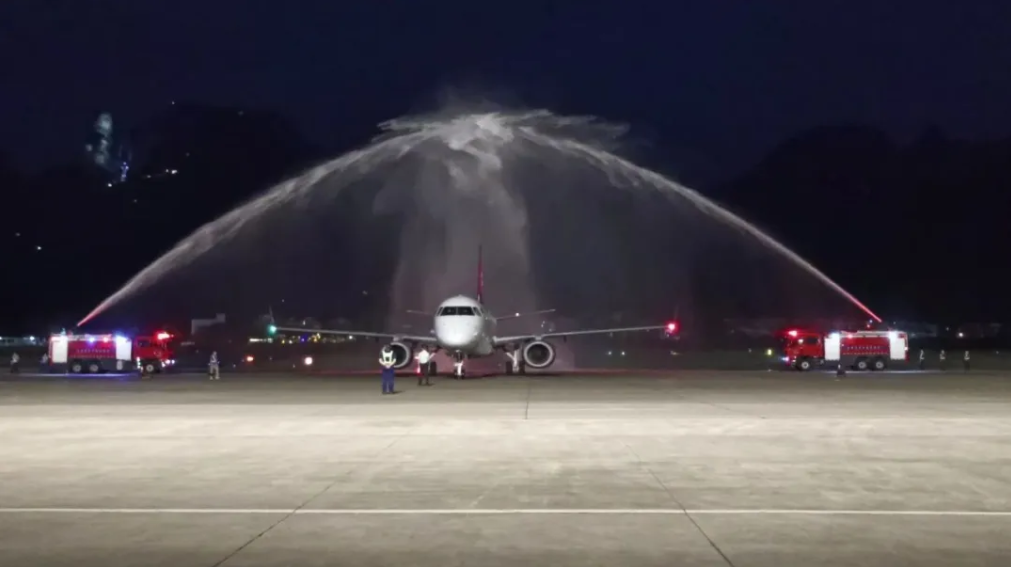7月8日20时18分,搭载98名旅客的MR845航班从蒙古国乌兰巴托抵达张家界荷花国际机场,张家界往返乌兰巴托国际客运航线历史上首次通航,这是张家界开通东北亚方向的第一条航线。