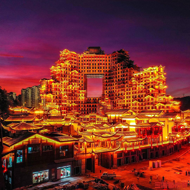 它将独特的土家族建筑奇观与现代光影科技(如全息投影、互动灯光秀)完美结合,打造出极具沉浸感的夜间文化体验场景,并通过引入丰富的地方非遗展示、特色美食集市与沉浸式演艺活动,成功激活区域夜游经济,为游客提供了传统与现代交织的全新文旅样本,引领了沉浸式文化夜游的新风潮。