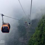 决定去天门山,一个很重要的原因就是想坐一下这个世界第一的索道——长7000多米,高1000多米,从市内直接就到了天门山顶,既刺激又轻松。一大早到了索道站,天门洞景区由于下雪封路没法游览,256的票价减少到225,连最著名的景点都去不了,看来真是来坐长途索道了。