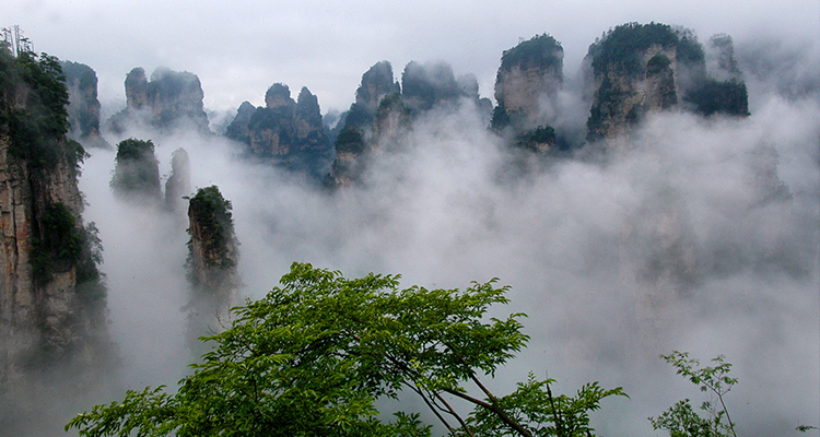 袁家界是电影《阿凡达》中“哈利路亚山”的取景地,你可以在这里探寻电影中群山漂浮、星罗棋布的魔幻世界。如果碰巧山中下起了小雨,或是等到雨后初晴,更能欣赏到雾气弥漫、群峰叠嶂的美景。迷魂台是理想的观景位置,站在台上,四周有上百座石峰矗立,气势磅礴。这里还能看到横跨于两山之间,垂直高差357米的天下第一桥。