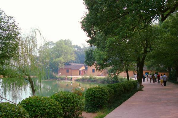 故居前面有一口水塘,房后有一抹低山,整个故居被一片郁郁葱葱的树林年环抱。