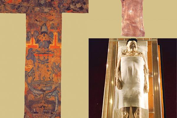 马王堆三座汉墓共出土珍贵文物3000多件,绝大多数保存完好。其中五百多件各种漆器,制作精致,纹饰华丽,光泽如新。珍贵的是一号墓的大量丝织品,保护完好。品种众多,有绢、绮、罗、纱、锦等。有一件素纱禅衣,轻若烟雾,薄如蝉翼,该衣长1.28米,且有长袖,重量仅49克,织造技巧之高超,真是天工巧夺。出土的帛画,为我国现存最早的描写当时现实生活的大型作品。还有彩俑、乐器、兵器、印章、帛书等珍品。