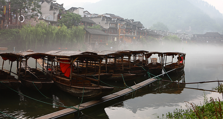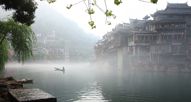 沱江河是古城凤凰的母亲河,她依着城墙缓缓流淌,世世代代哺育着古城儿女。坐上乌蓬船,听着艄公的号子,看着两岸已有百年历史的土家吊脚楼,别有一番韵味。顺水而下,穿过虹桥一幅江南水乡的画卷便展现于眼前:万寿宫、万名塔、夺翠楼……一种远离尘世的感觉悠然而生。沱江的南岸是古城墙,用紫红沙石砌成,典雅不失雄伟。城墙有东、北两座城楼,久经沧桑,依然壮观。 沱江河水清澈,城墙边的河道很浅,水流悠游缓和,可以看到柔波里招摇的水草,可以撑一支长篙漫溯。沿沱江边而建的吊脚楼群在东门虹桥和北门跳岩附近,细脚伶仃的立在沱江里,象一幅永不回来的风景。