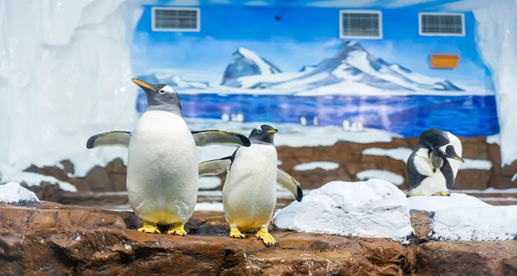 极地馆:主要为极地动物区,分为白鲸池、海狮池、海豚池、海豹池、企鹅池、水獭池等水生生物展示休息表演池,以及北极狼舍、北极狐舍等陆生生物展示休息笼舍。馆内建有一个高大宽敞明亮,音响等设备设施先进配备LED大型显示屏的表演剧场,可供1800多游客同时近距离观赏海豚、海狮等精彩表演。